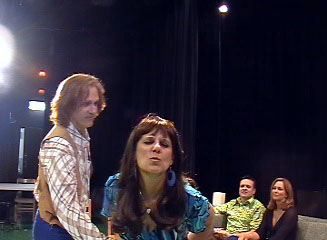 Backstage in Killian Auditorium in '70's wigs and clothes |